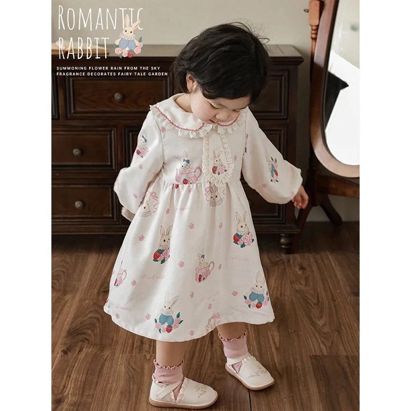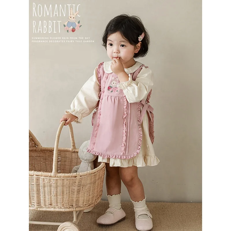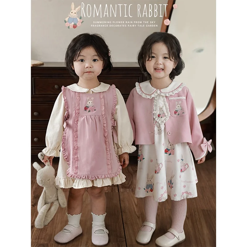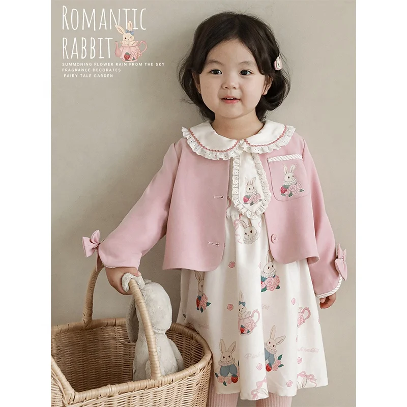 YOEHYAUL New Arrival Cartoon Long Sleeve Pink Coat Autumn Suit Jacket Baby Girls Floral Dresses Wholesale Girls Kids Set